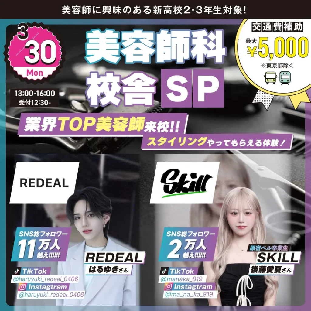 美容師科・ヘアメイク科は、入学辞退者が出たため、2026年度4月入学の出願受付を再開いたしました。