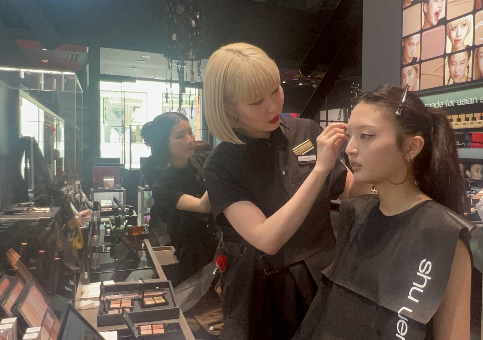 学校の周りは、最新コスメショップやアパレル、トレンドスポットが集まる街。