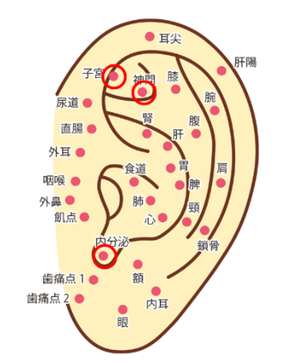 • 「神門」:ホルモンバランスを整え、生理周期を安定させる