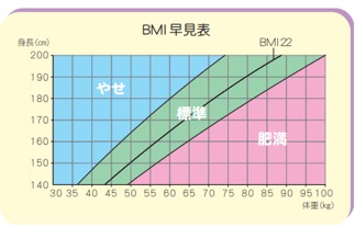 そこで、病気の予防につなげるため、標準体重・BMIという肥満度を判定する方法があります。
