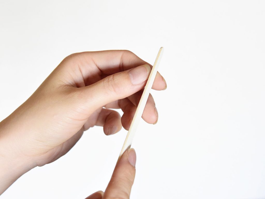 2. チップが浮いてきたら、ウッドスティックを爪とチップの間に入れてやさしく外す