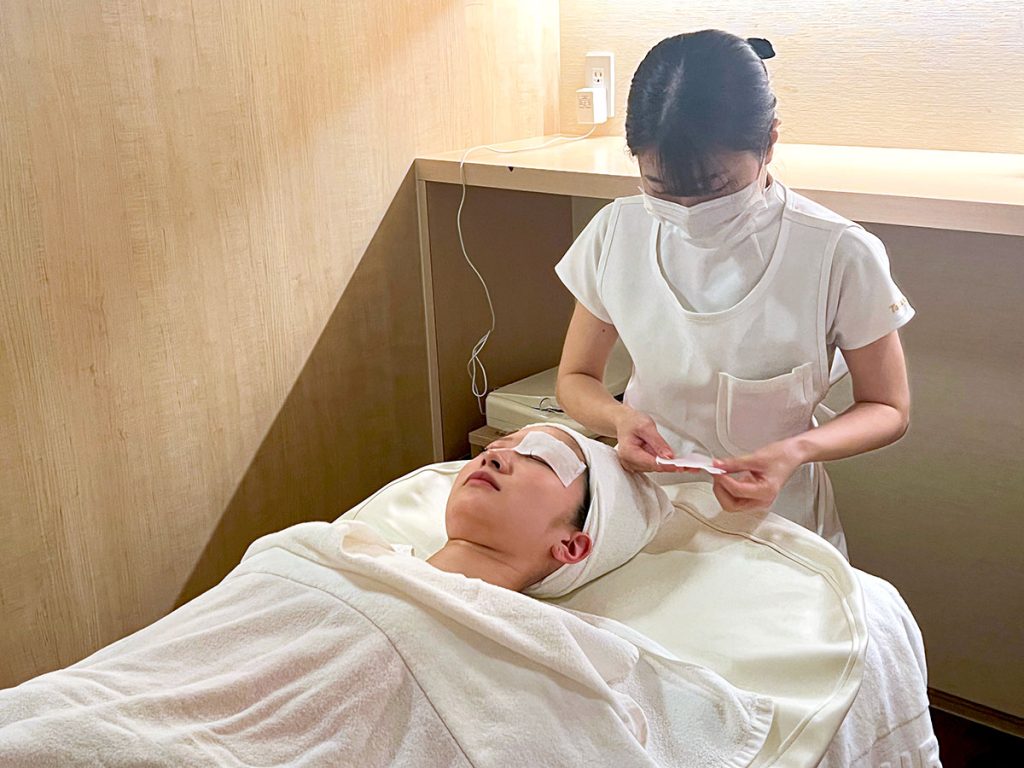 顔の肌の手入れをする「フェイシャルトリートメント」が基本で、化粧品や専用機器を使って施術をします。