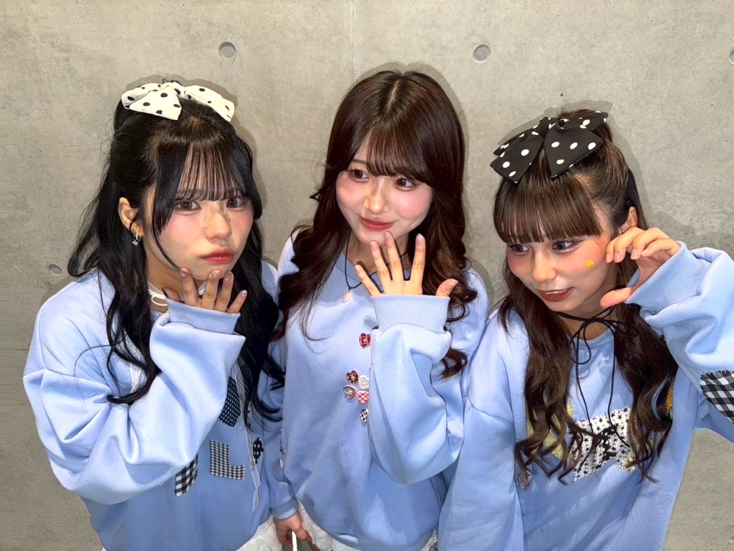動くたびにゆれる毛先がかわいく、体育祭や文化祭のチームコーデにも相性抜群!ブルー系アイテムやぬいぐるみと合わせることで、全体の統一感をUPさせています。