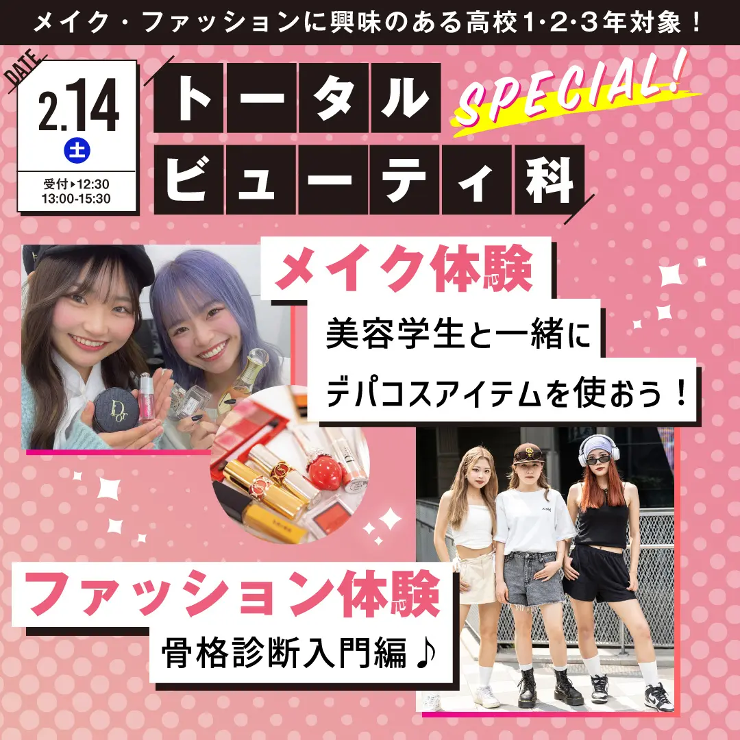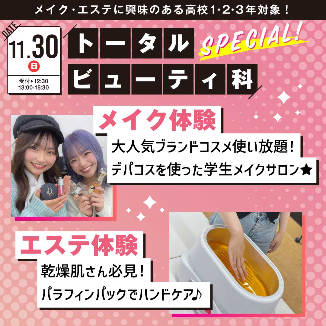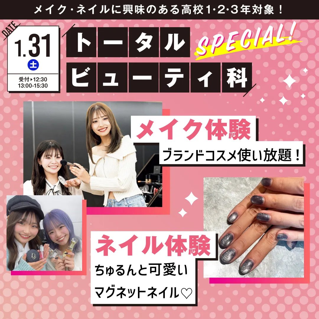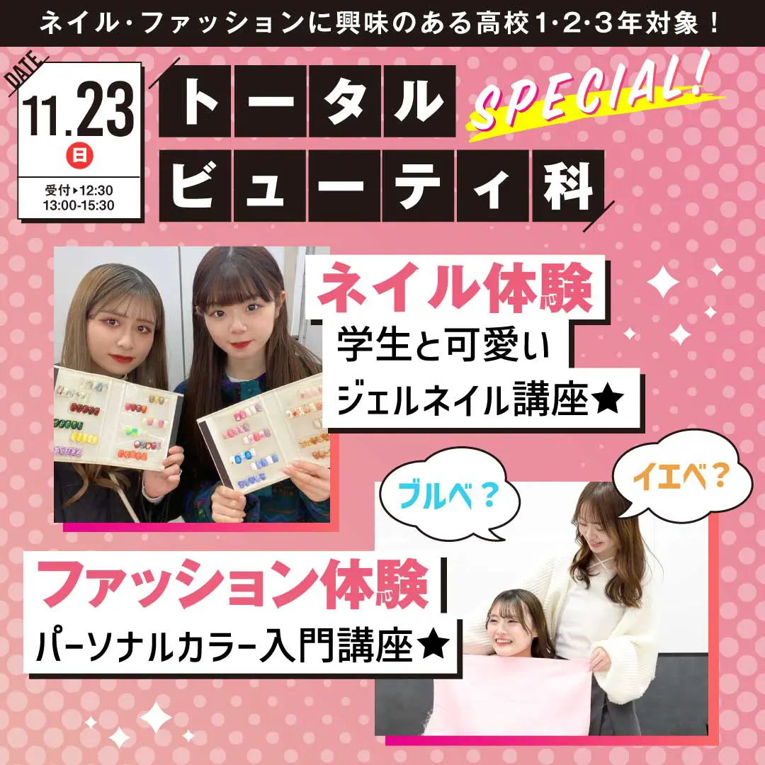 トータルビューティ科体験授業参加で美容グッズプレゼント!